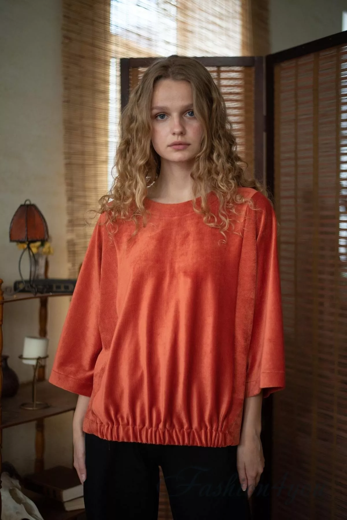 Велюровый комплект для дома с широкими рукавами Silence 019 Terracotta