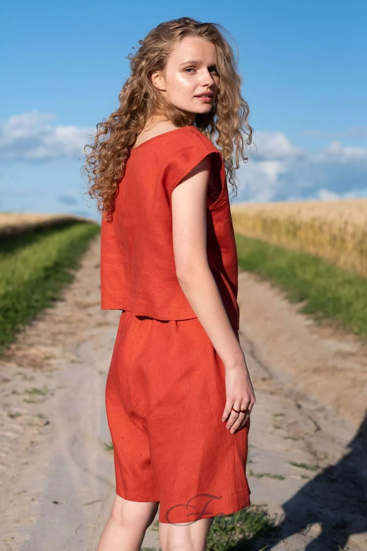 Льняные шорты Silence 005 Terracotta