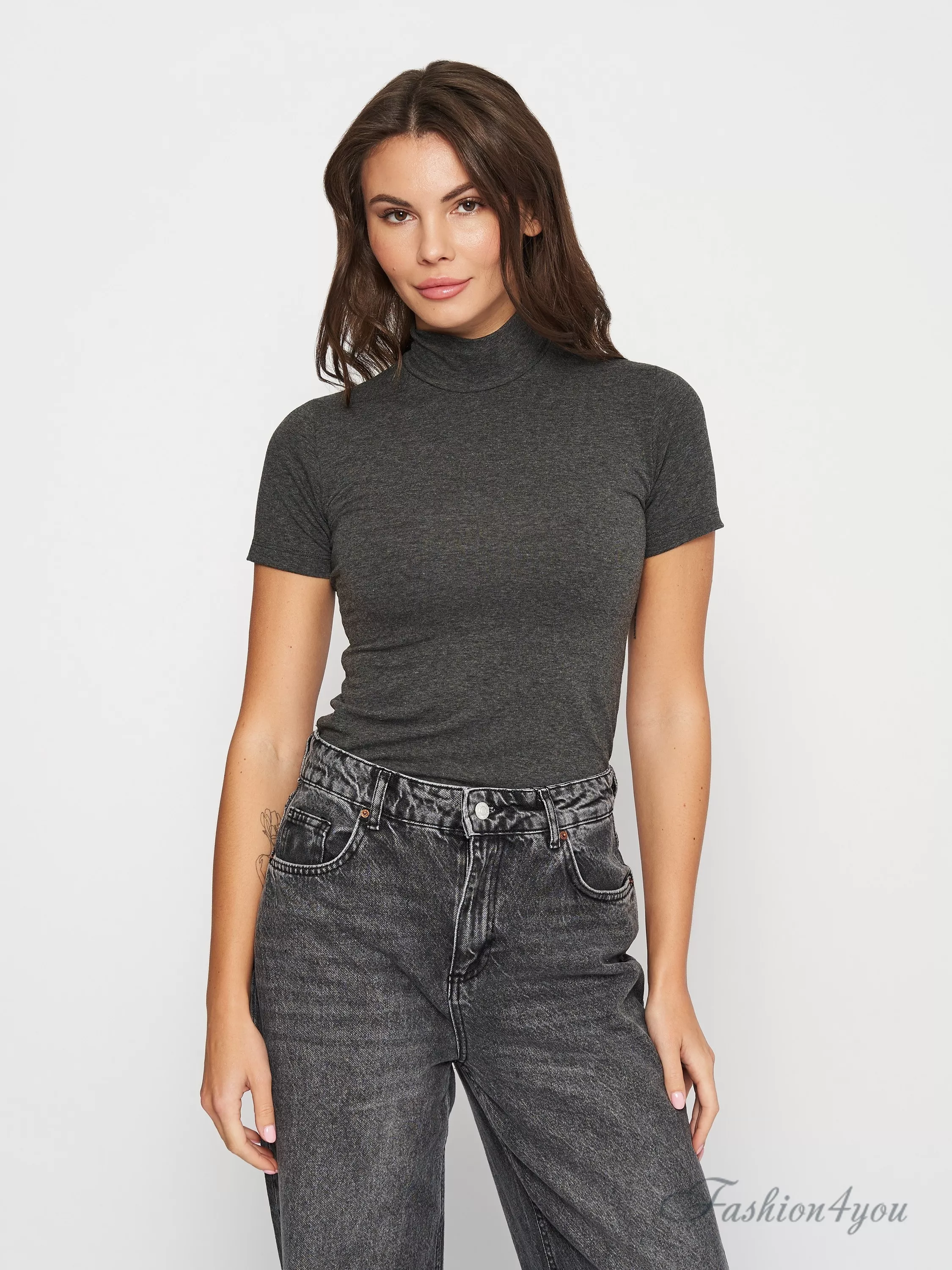 Женский гольф с коротким рукавом и воротником-стойкой, изготовленный из мягкой и шелковистой на ощупь ткани, в составе которой присутствует большой процент модала с добавлением кашемира. Данная модель является универсальной по части сочетаний в различных стилях.