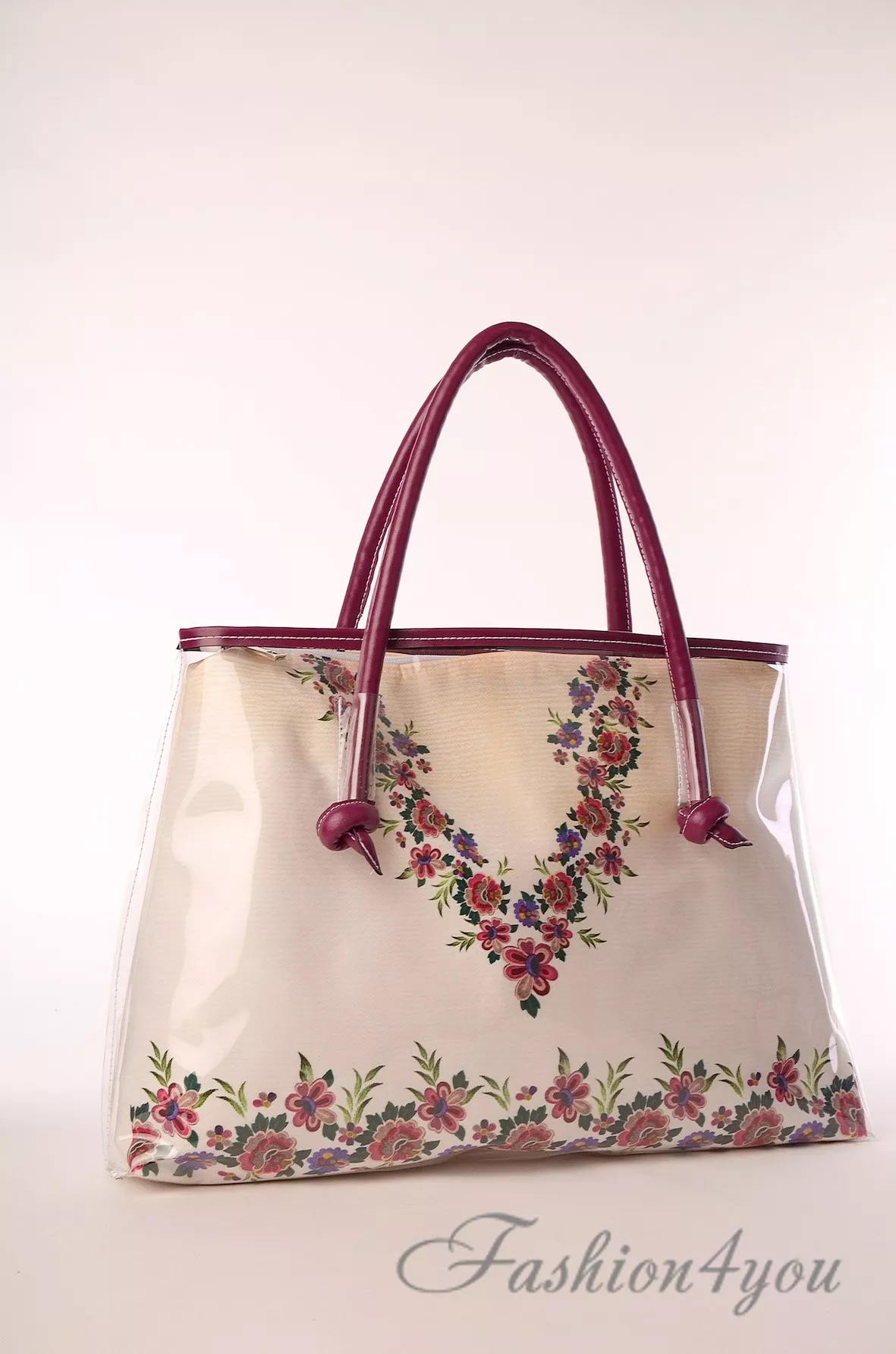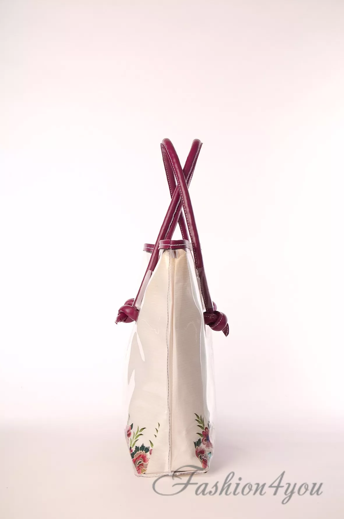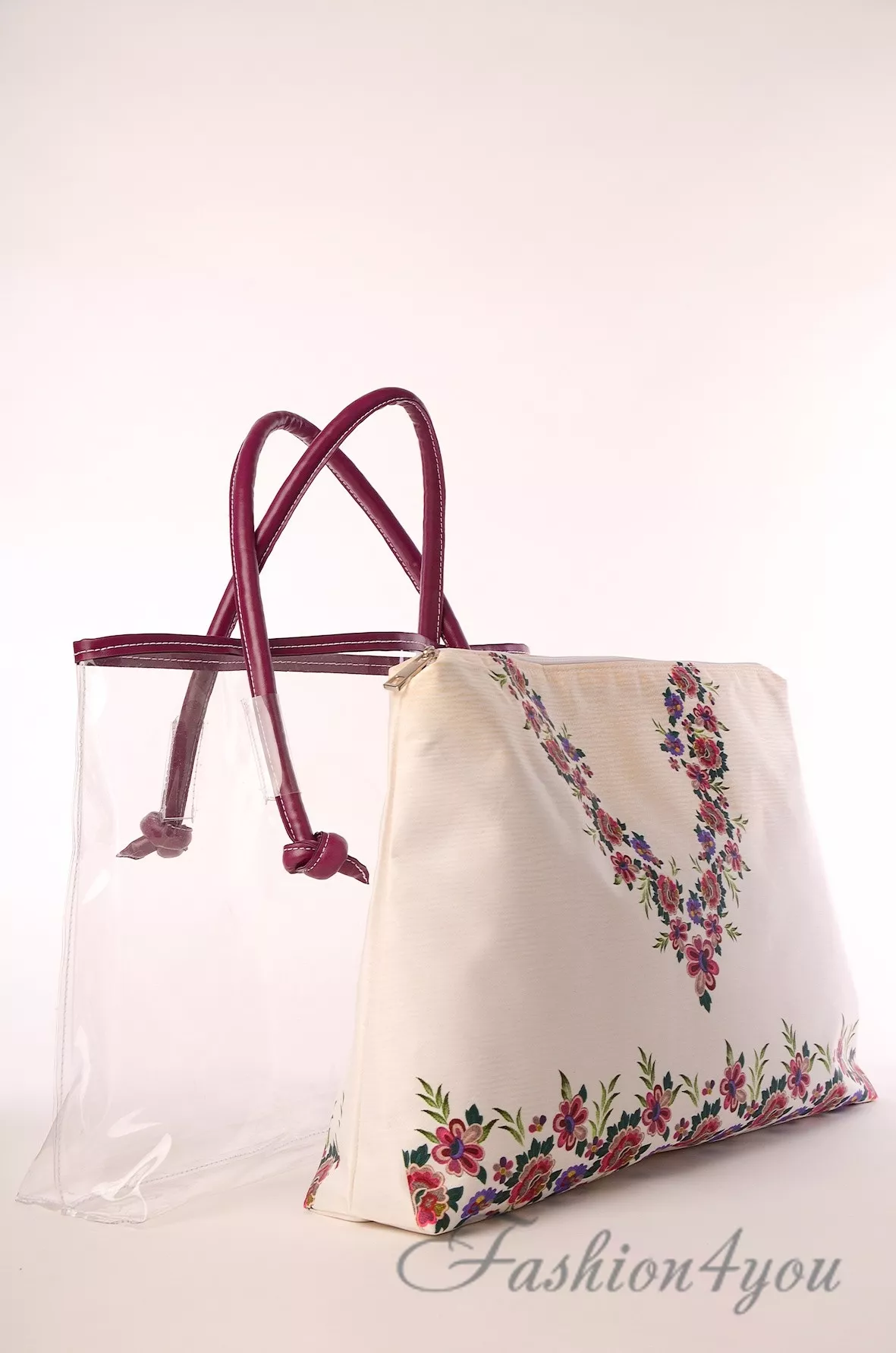 Большая белая пляжная сумка с цветами и прозрачная и сумка на змейке Argento